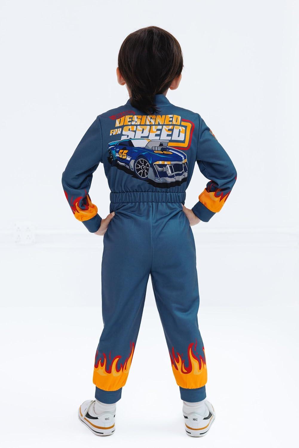 Hot Wheels Zip Up Hooded Coverall Toddler to Big Kid Sizes (3T – 10-12)(Blue)